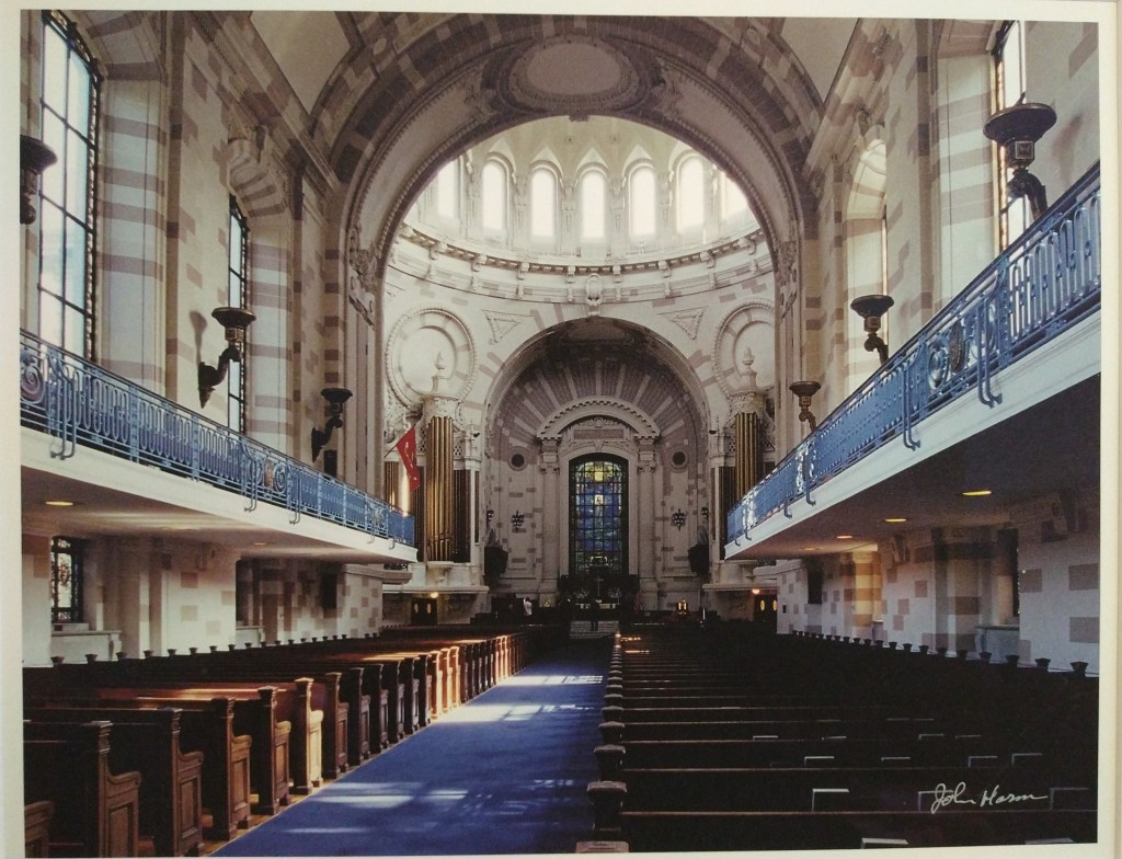The Navy Chapel on campus was a sacred refuge from the stresses of plebe summer and the fall academic semester. I was fortunate to have a good enough voice to be accepted as a member of the USNA Protestant Chapel Choir. I say fortunate because it gave me a recurring reason to escape the daily maelstrom for an hour or so and spend time in the interior of this beautiful chapel. It gave off numinous vibes at all times, with hushed interiors, unusual blue carpet, beautiful white marble, and stained-glass windows incorporating naval themes with Christian iconography. It was so important to me personally that to this day, I keep a picture on the wall of my office reminding me daily of that sacred space.